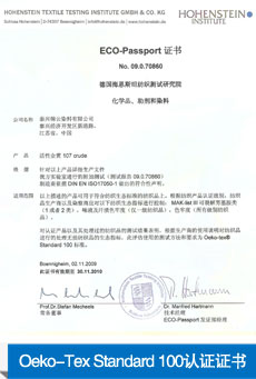 我們徹底執(zhí)行國際標準,先后獲得了:生態(tài)認證證書、符合歐盟標準的Oeko-Tex Standard 100證書、GOTS有機棉認證證書,按Reach法規(guī)要求成功地進行了預注冊。